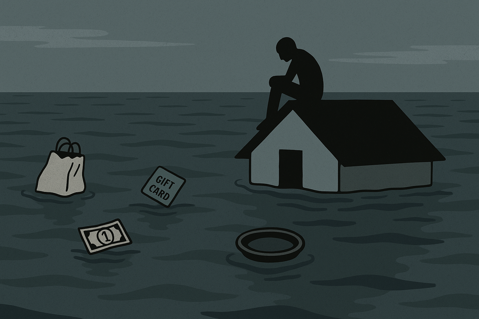 To expose how absurd this logic is, consider a modern parable. A family is drowning, not in a flood, but in the economy. Rent goes up, wages stagnate, and the fridge is empty. They pray for provision. What arrives is not justice or systemic change, but random scraps. A gift card for groceries. A friend Venmoing fifty bucks. A one-time donation from a church pantry. Each time, they proclaim it a miracle. “God provided,” they say. And in a narrow sense, they are right. They ate that night.
